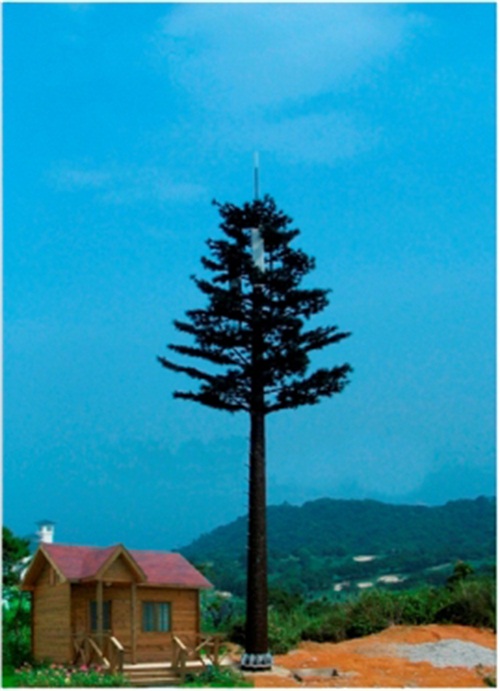 大型仿生樹塔是通信行業用于偽裝天線最常用樹型之一,高10米~35米。樹冠整體造型成寶塔狀。 大型仿生樹塔采用高強度的鍍鋅管塔為主桿,外敷高分子仿真樹皮,透波性率強,阻燃性好,達到I級阻燃指標,保證20年不老化。樹葉采用抗紫外線PU高性能防阻燃環保材料。耐腐蝕性能好,耐老化耐高溫防阻燃,更加環保,防紫外線強。整體外形不僅美觀,仿真度高、經久耐用,而且與周邊環境特別協調,非常適用于對環境美化要求較高的基站如:高級住宅區、主題公園、風景名勝旅游區、動植物保護區及游樂場所。